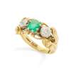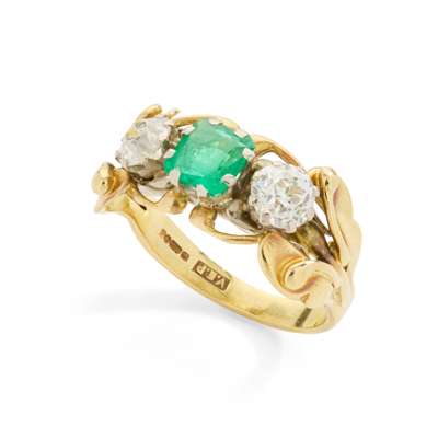 An 18ct gold emerald and diamond three-stone ring
