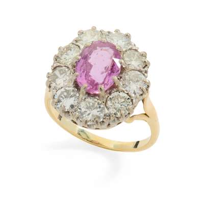 A pink sapphire and diamond cluster ring