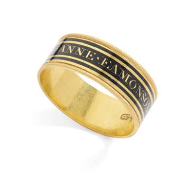 The band with black enamel detailing reading ‘MRS ANNE. EAMONSON. OB: 19 JUNE 1816 AE: 72’, within textured border, UK hallmark
