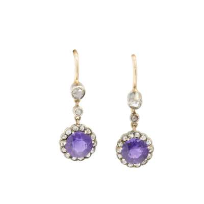A pair of early 20th century amethyst and diamond earrings