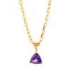 Claw-set with a triangular amethyst, stamped 375; suspended from a 9ct gold belcher-link chain, UK hallmark