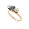 A sapphire and diamond three-stone ring