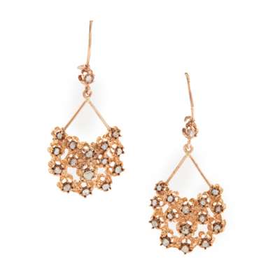 Each of pierced textured design, set throughout with polki diamonds, hook fitting, unmarked