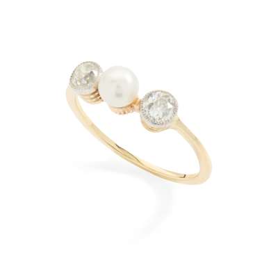 An early 20th century pearl and diamond three-stone ring