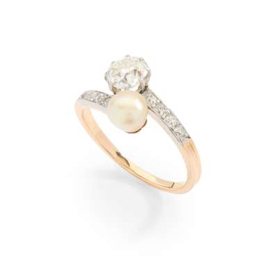 A diamond and pearl two-stone 'Moi-et-Toi' ring