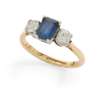 A sapphire and diamond three-stone ring