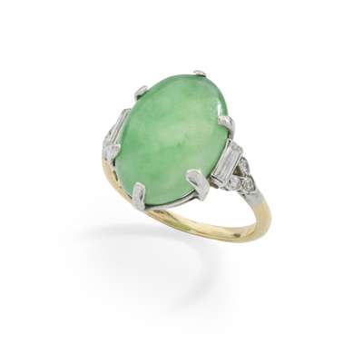 A jade and diamond dress ring