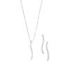 Including a pair of earrings and necklace, each formed of a pendant of waved linear design, claw-set with round-cut diamonds, the pendant on fine box link chain; the earrings with post and butterfly fittings, stamped 750