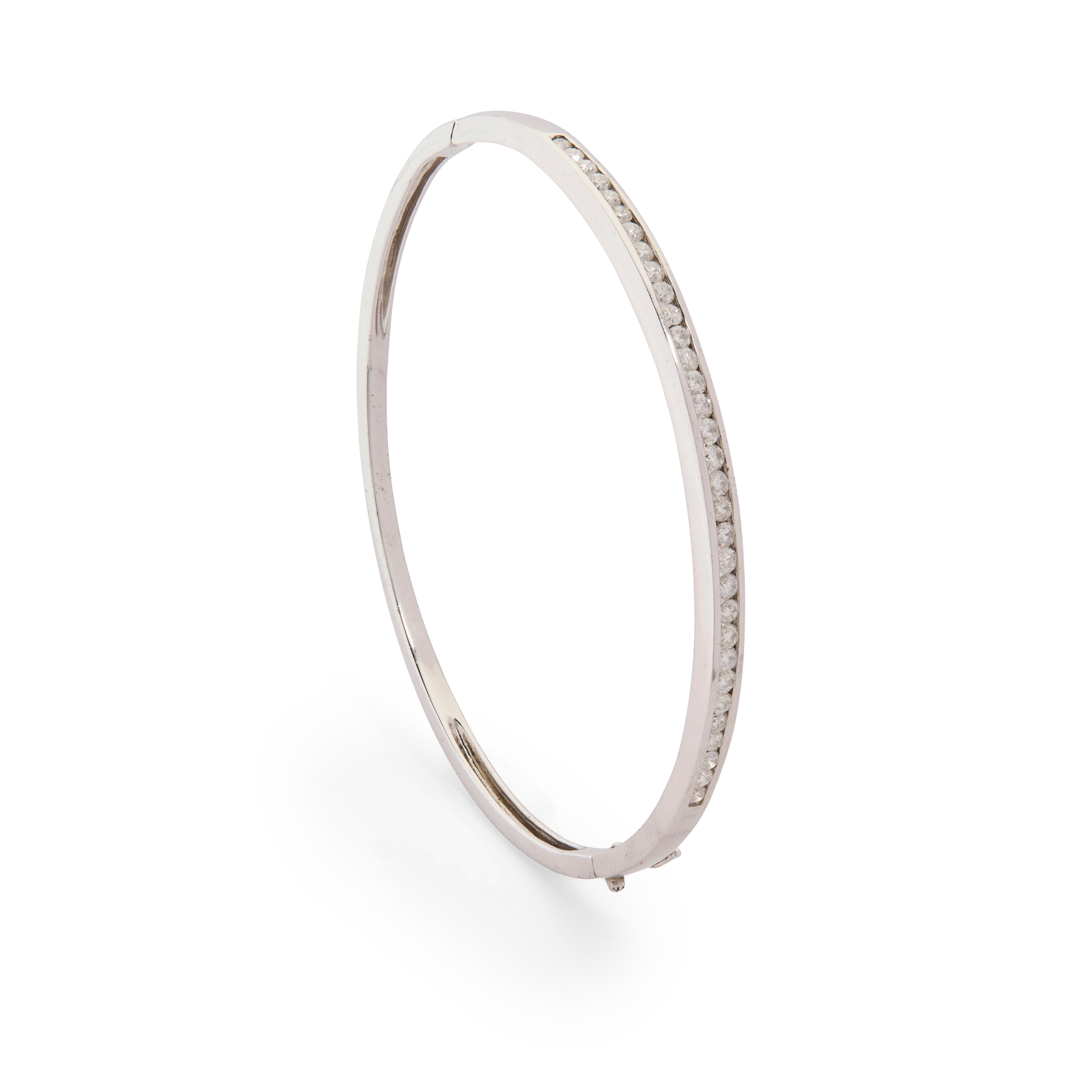 Of hinged design, the front channel-set with a row of round brilliant-cut diamonds, UK hallmark