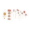 Including an orange paste and carved coral pendant; four carved or cabochon coral brooches, two with hairwork detail; ten carved coral and shell tie pins (15)