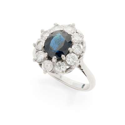 An 18ct gold sapphire and diamond cluster ring