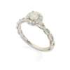 Claw-set with a round brilliant-cut diamond, within a border of round brilliant-cut diamonds, woven band, maker's mark, unmarked