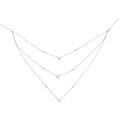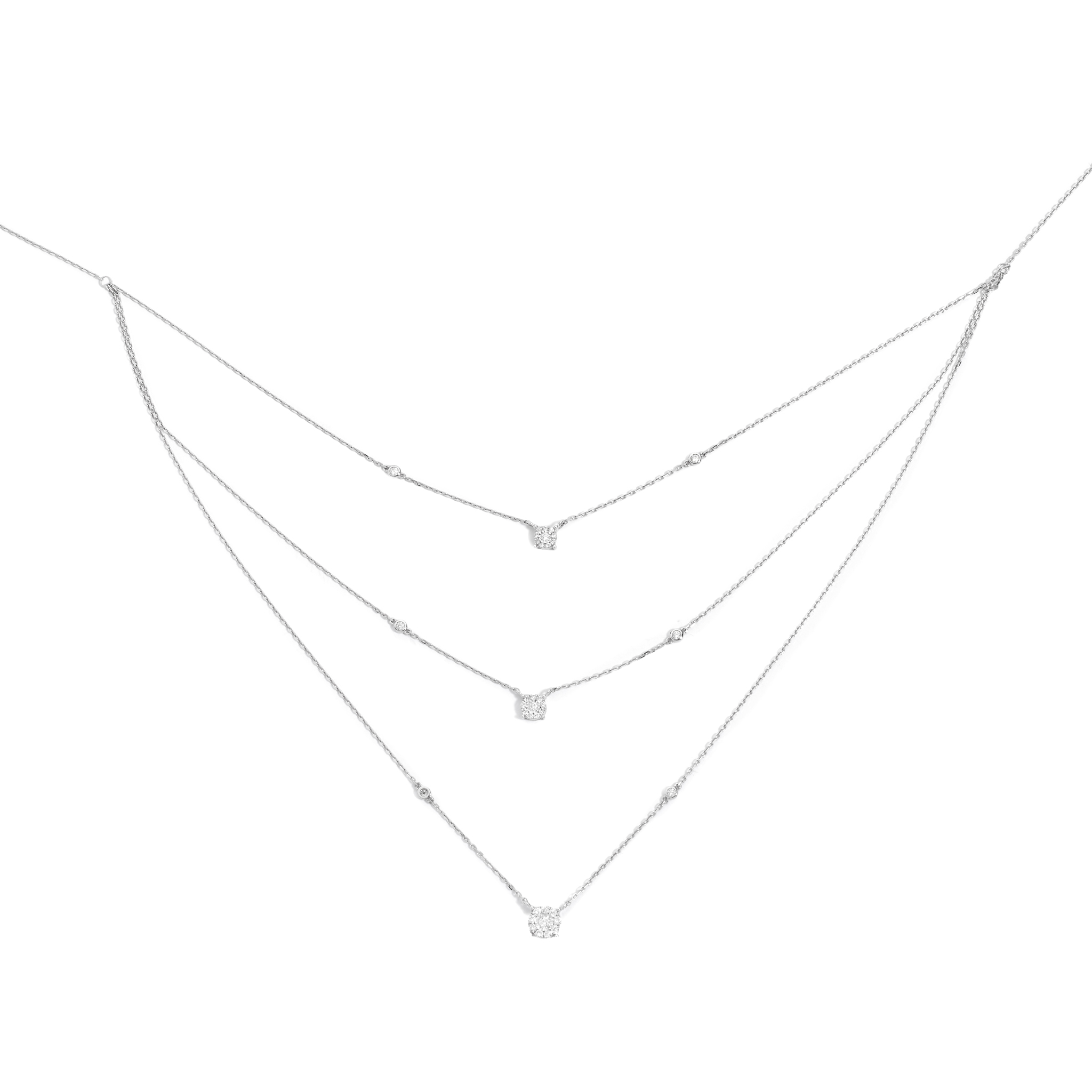 Composed of three trace-link strands, set at internals with single spectacle-set diamonds or pavé-set round brilliant-cut diamond clusters, stamped 750