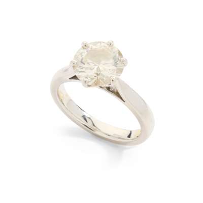 Claw-set with a round brilliant-cut diamond, weighing approximately 2.51cts, plain band, UK hallmark