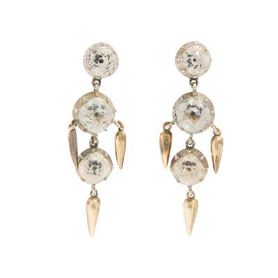 Each suspended three foil-backed paste gems, tapering pendants, post and butterfly fittings, unmarked
