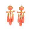 Each set with a polished cabochon coral, suspending three polished coral drops, wire-work detail, hook fittings, unmarked