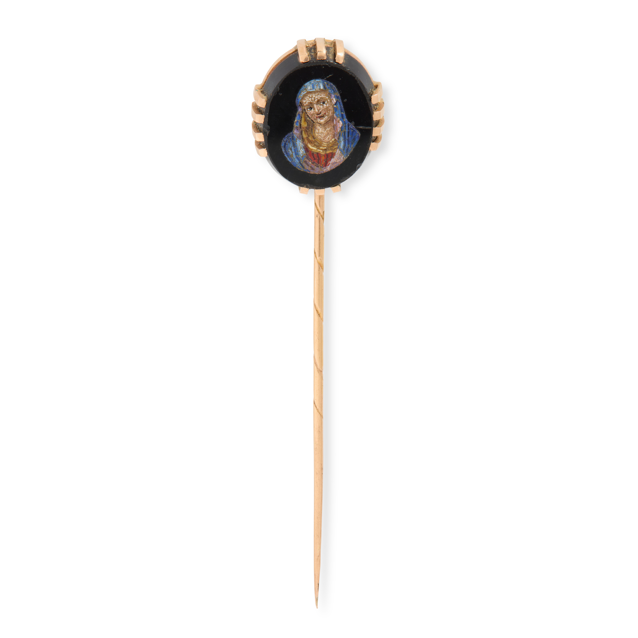 Claw-set with an oval micro-mosaic depicting the Virgin Mary, unmarked