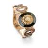 The central oval link set with a claw-set faceted oval citrine within a bloodstone and banded agate border, set to either side with a trio of various agate set panels, unmarked