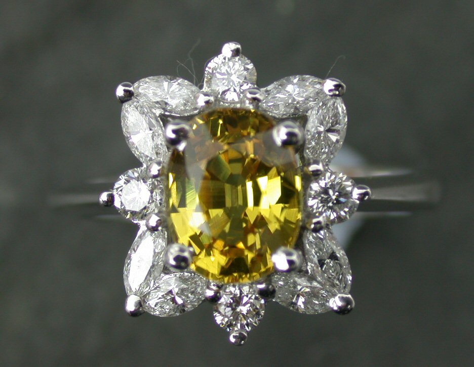 Estimated total weights: yellow sapphire 1.72cts; diamonds 0.48cts