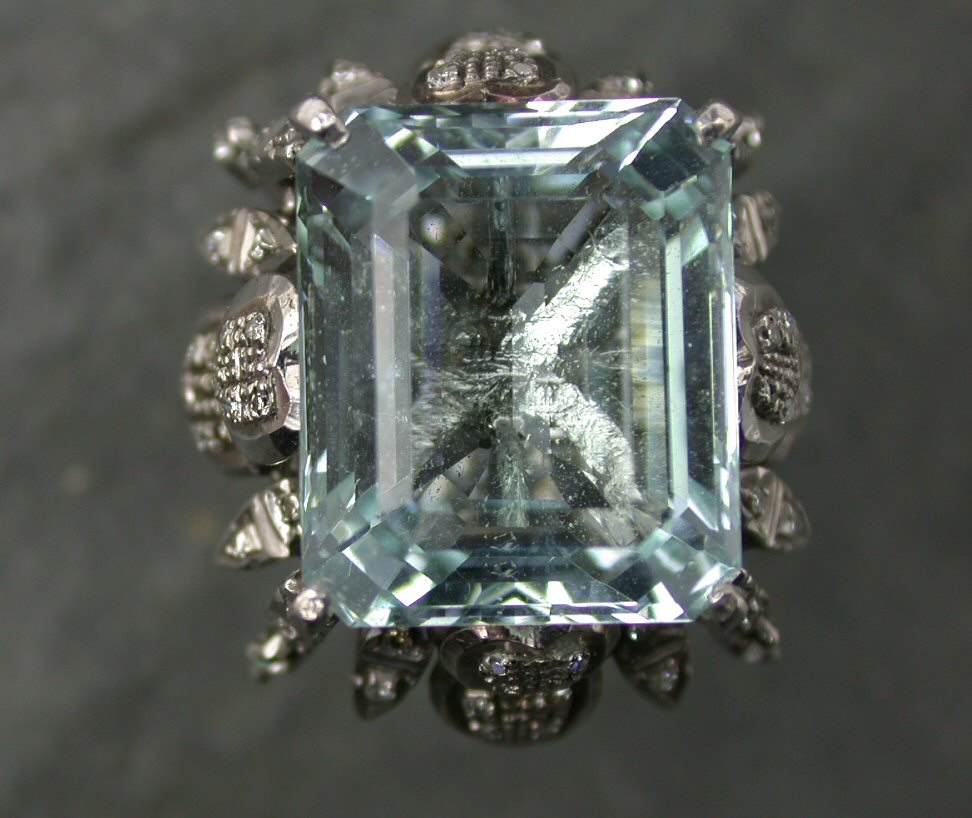 An aquamarine and diamond cocktail ring,