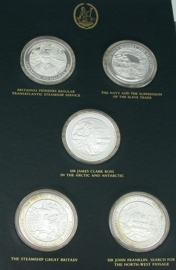 depicting Mountbatten medallic history of Great Britain and the Sea, 100 silver medals and albums