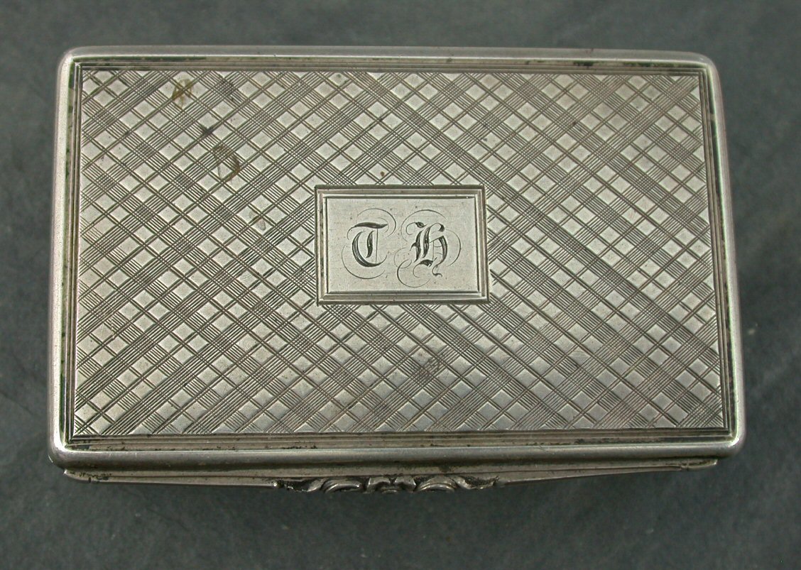 with marks for Edinburgh 1843, maker James Nasmyth & Co, the outer case with engraved 'tartan' gilt interior with presentation inscription "From Rev MacRae...Hawick...Thomas Hill...The Church 25 Jan 1843