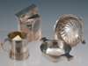 with marks for London 1893 of circular wrythen form, hoof feet, a quaich with marks for Edinburgh 1924, Brook & Sons, a card case with marks for Chester 1898 of plain rectangular form, a Georgian mug (converted) and another mug (5)