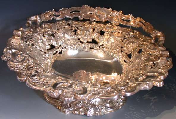 with marks for Sheffield 1821, of shaped circular form, border ivy leaf, rose and c-scroll, pierced decoration, all on shaped pierced foot
