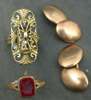a pair of oval gold cufflinks, an 18ct gold hardstone intaglio rim