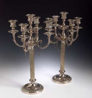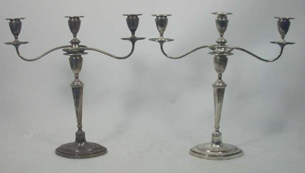 A pair of Edwardian three-light candelabra,