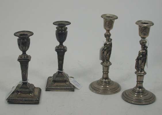 A set of four American silver desk candlesticks,