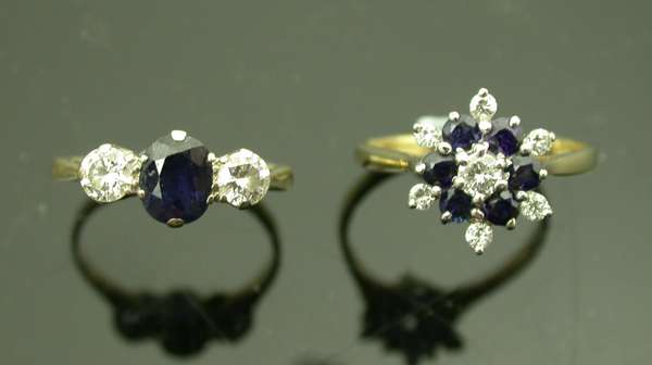 An 18ct gold mounted sapphire and diamond ring,
