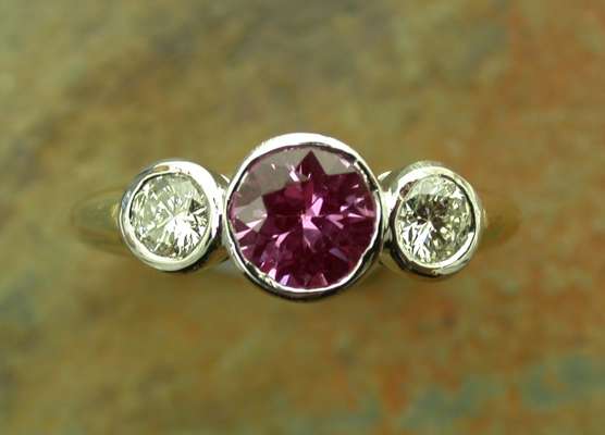 A platinum mounted sapphire and diamond three stone ring,