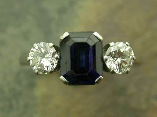 An 18ct gold mounted sapphire and diamond three stone ring,