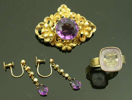 An amethyst intaglio ring,