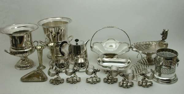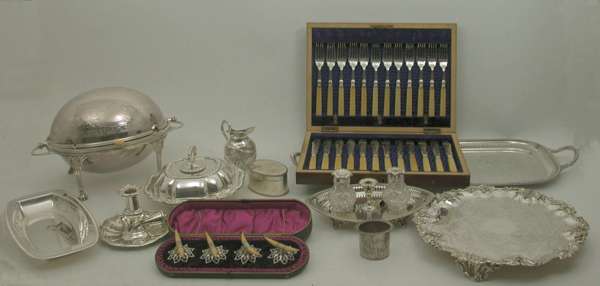 A large collection of mostly plated items,