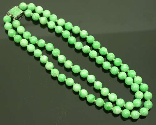 A jade two-row necklace,