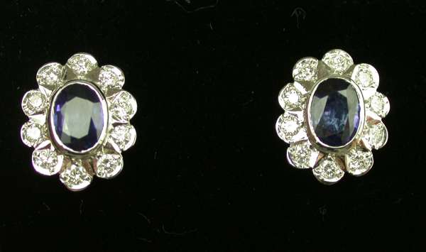 A pair of sapphire and diamond cluster earrings,