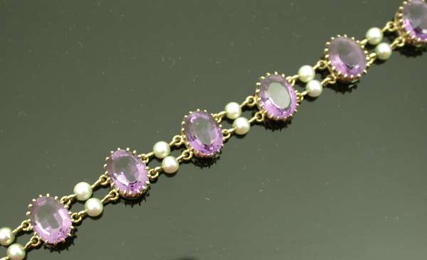 A 9ct gold mounted amethyst and cultured pearl bracelet,