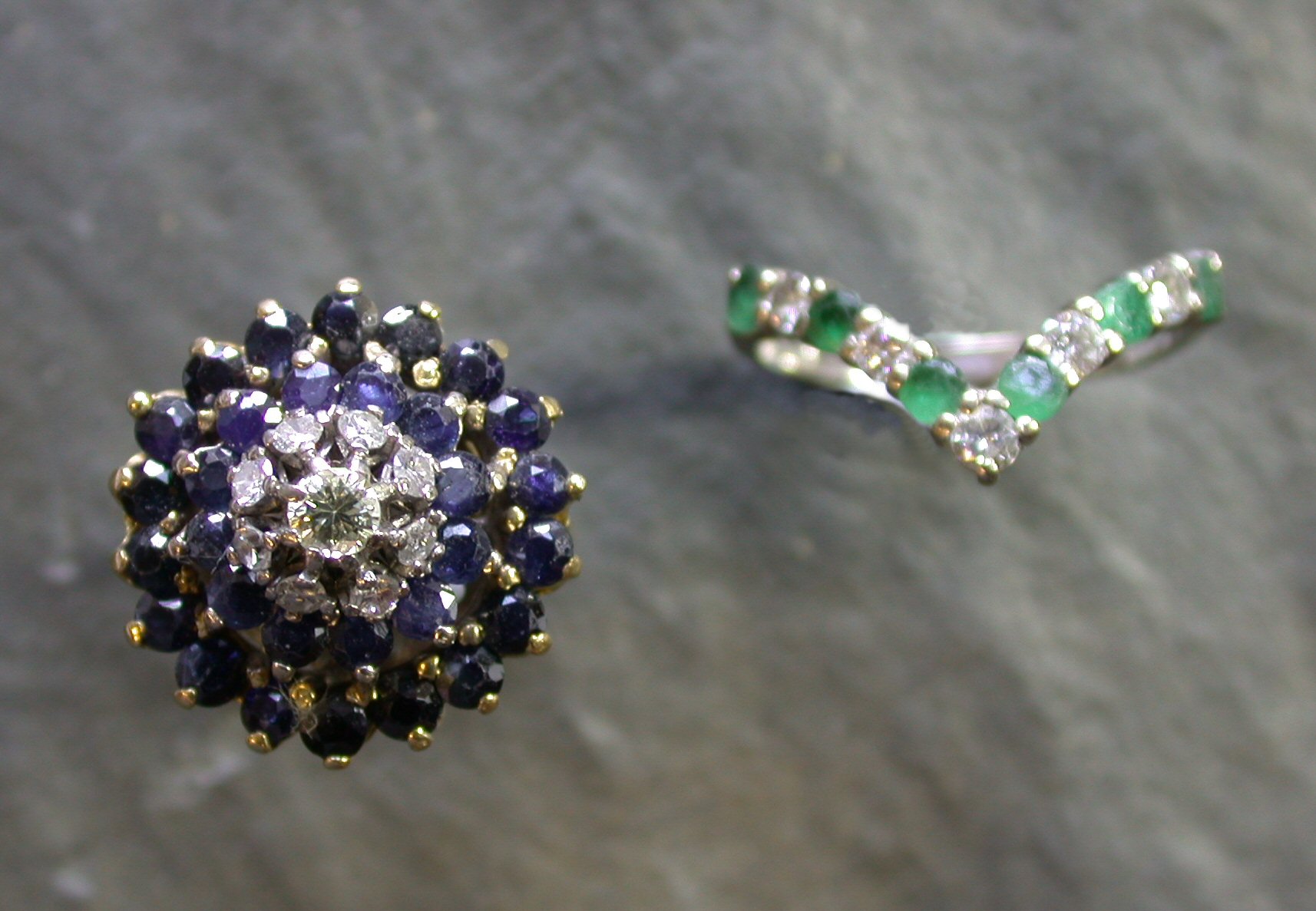 alternately set with round brilliant cut stones, the front of V-shape, together with a sapphire and diamond target cluster ring (2)