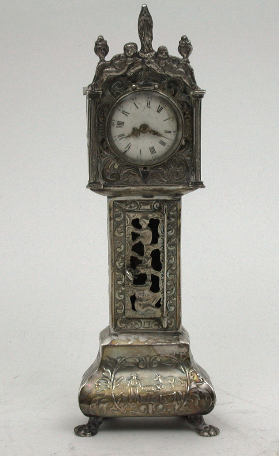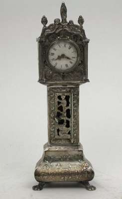 A Dutch silver miniature grandfather clock,