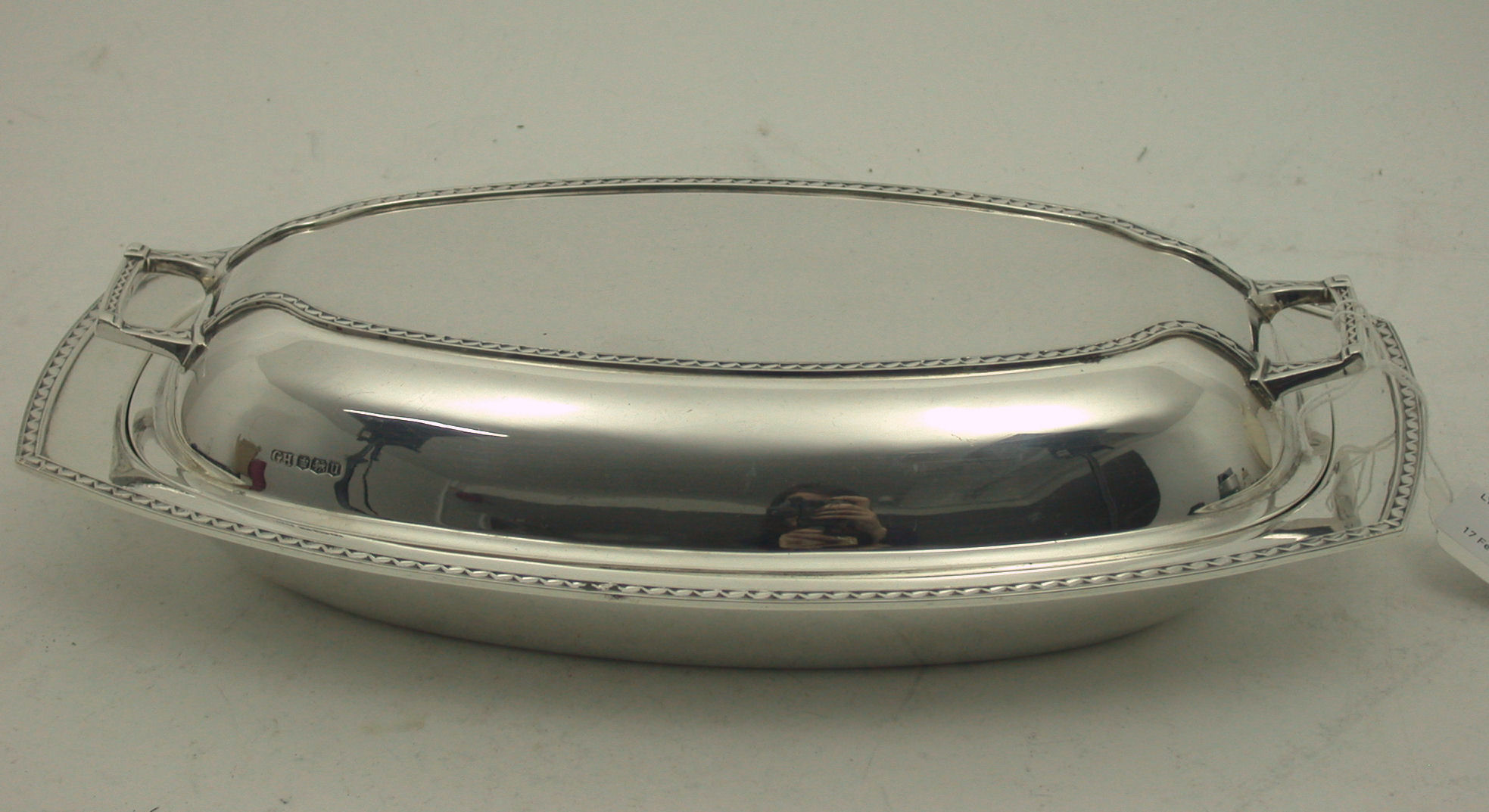 with marks for Sheffield 1937, maker GH, of shaped oval form with zig-zag borders