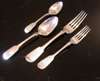 with marks for Edinburgh various dates to include 1809, 1823, 1825, 1834, 1840, and 1851, comprising four tablespoons, two dessert spoons, nine dessert forks and eighteen table forks (qty)
