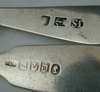 with marks for Dumfries, by J. Stewart, three marks ?, anchor, JS, and a Fiddle pattern teaspoon, also Dumfries, by Adam Burgess, five marks, AB, castle, thistle, Gothic D, tree