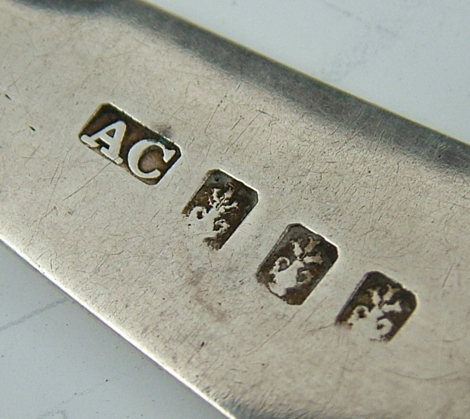with marks for Dundee circa 1818, maker Alex Cameron, four marks AC, pot of lilies thrice, of fiddle and shell pattern