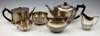 with marks for Sheffield 1883, maker Richard Martin & Ebenezer Hall, comprising teapot sugar bowl and cream jug, of oval outline with bead and geometric engraved borders, decorated to each side with a classical male portrait profile, together with an electroplated semi-fluted three-piece tea service (6)