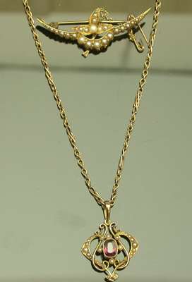 Lengths: pendant 4cm; chain 45cm and brooch 5cm