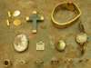 an 18ct gold and platinum mounted sapphire and diamond daisy cluster ring, another Victorian seed pearl set ring, an 18ct gold mounted intaglio set signet ring, a 9ct gold mounted nephrite cross brooch, a pair of 9ct gold cufflinks, a 9ct gold textured link bracelet and several other pieces (qty)