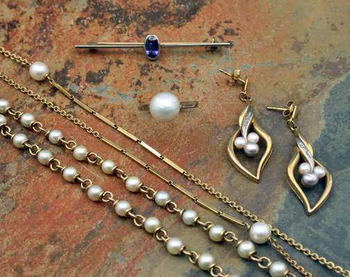 An Edwardian 15ct gold mounted seed pearl set pendant,
