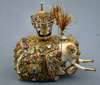 naturalistically carved and applied with a yellow metal wirework cover set with rubies, emeralds, sapphires and other gems